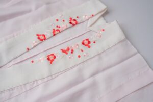 まず半襟ですが、これは長襦袢(ながじゅばん)に縫い付けて、襟元から少しだけ覗かせるものです。和装初心者 の揃え方としては白いものが基本ですが、最近は色柄で遊ぶことも多く、気軽に和装の個性を出す楽しい部分です。この半襟が汚れたら、着物全体ではなく半襟だけを外して洗えるので、お手入れの負担を減らすためにも非常に重要な存在です。